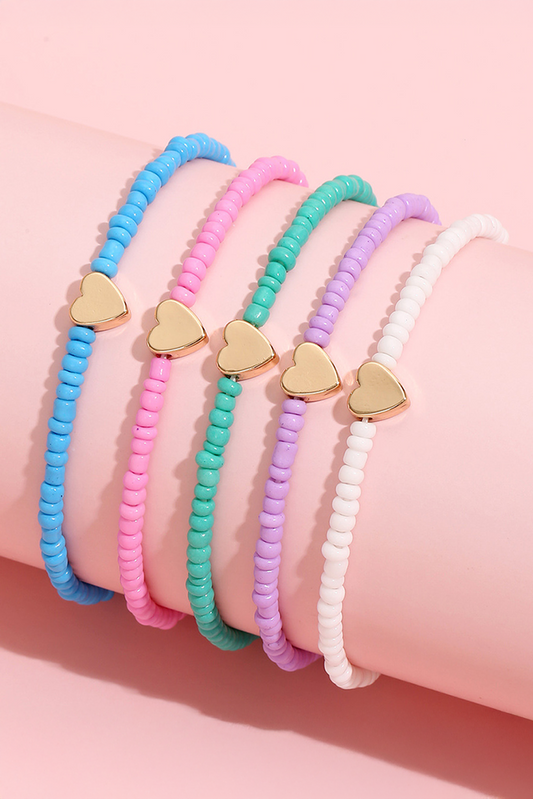 Gold Heart Charm Beaded Bracelet