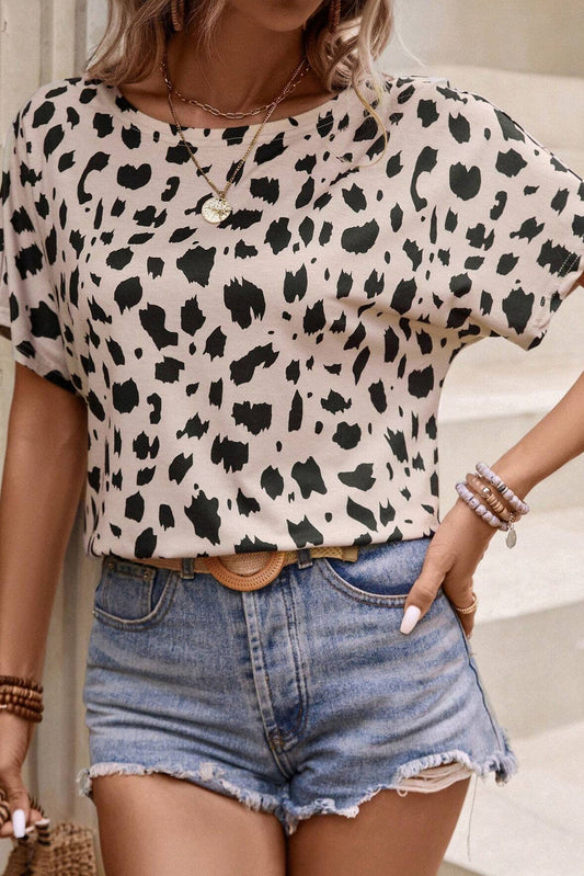 Khaki Leopard Print Twist Open Back Plus Size Top