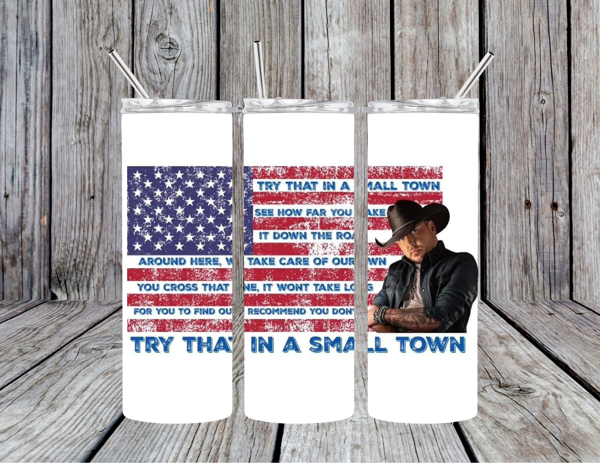 Jason Aldean Try That In A Small Town - Flag Skinny Tumbler